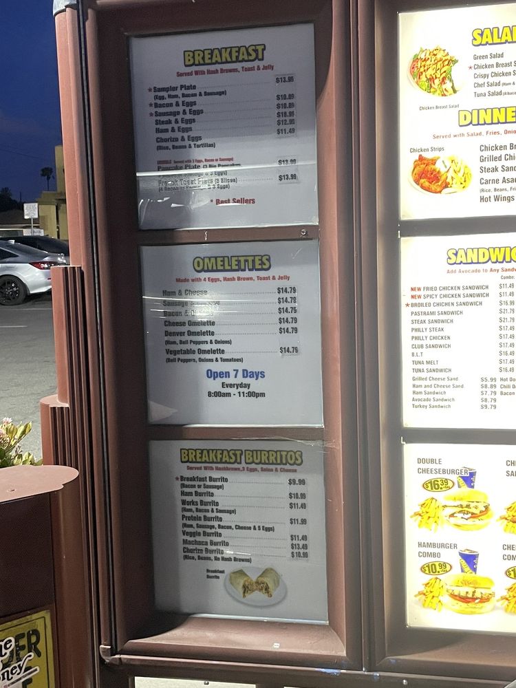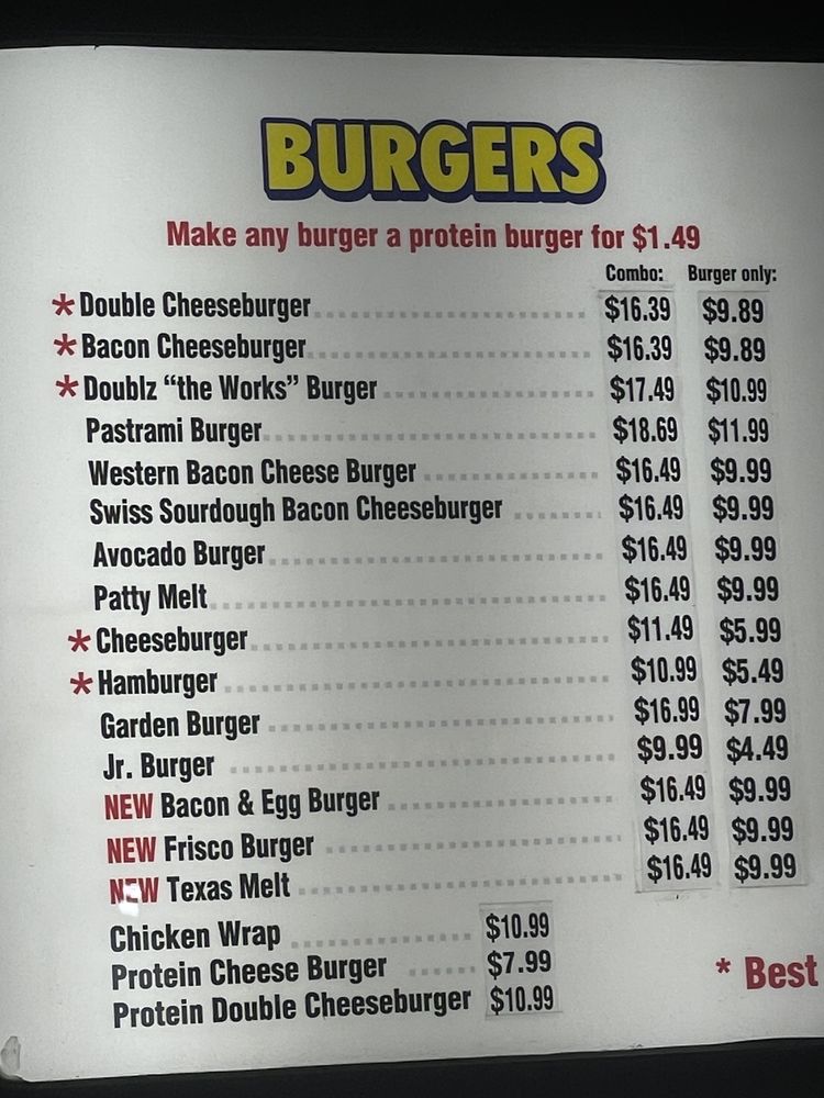 "Introducing the menu at Doublz, located in Paramount, CA, offers a wide range of delicious breakfast options including burritos, sandwiches, and omelettes. Customers rave about the crispy chicken burger and the DUI fries, praising the variety and comfort food options available. The BLT combo and sourdough bacon burger are favorites among patrons, with fresh ingredients and generous portions. The restaurant also offers Mexican dishes alongside classic American favorites, with consistent, fast, and courteous service. With a casual yet classy atmosphere, Doublz is a great spot for breakfast, lunch, dinner, or late-night cravings. The menu includes options for everyone, from meat lovers to vegetarians, making it a must-try dining destination in the area."