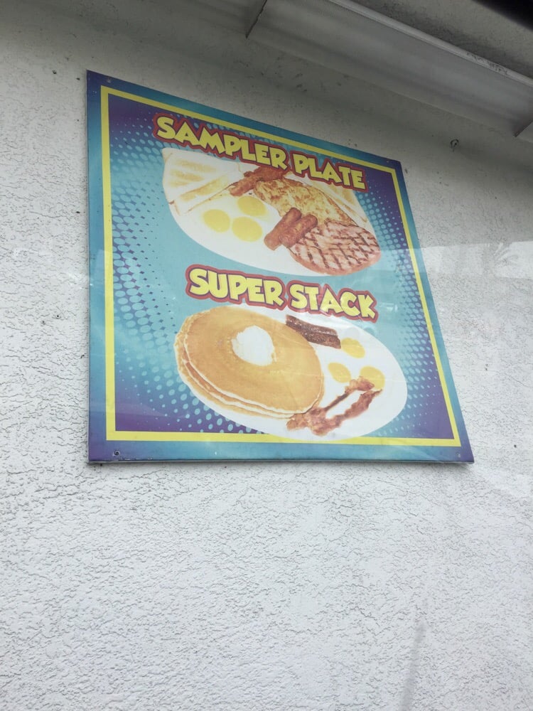 Made with 5 eggs, sausage, bacon, ham & cheese. Salsa on side.